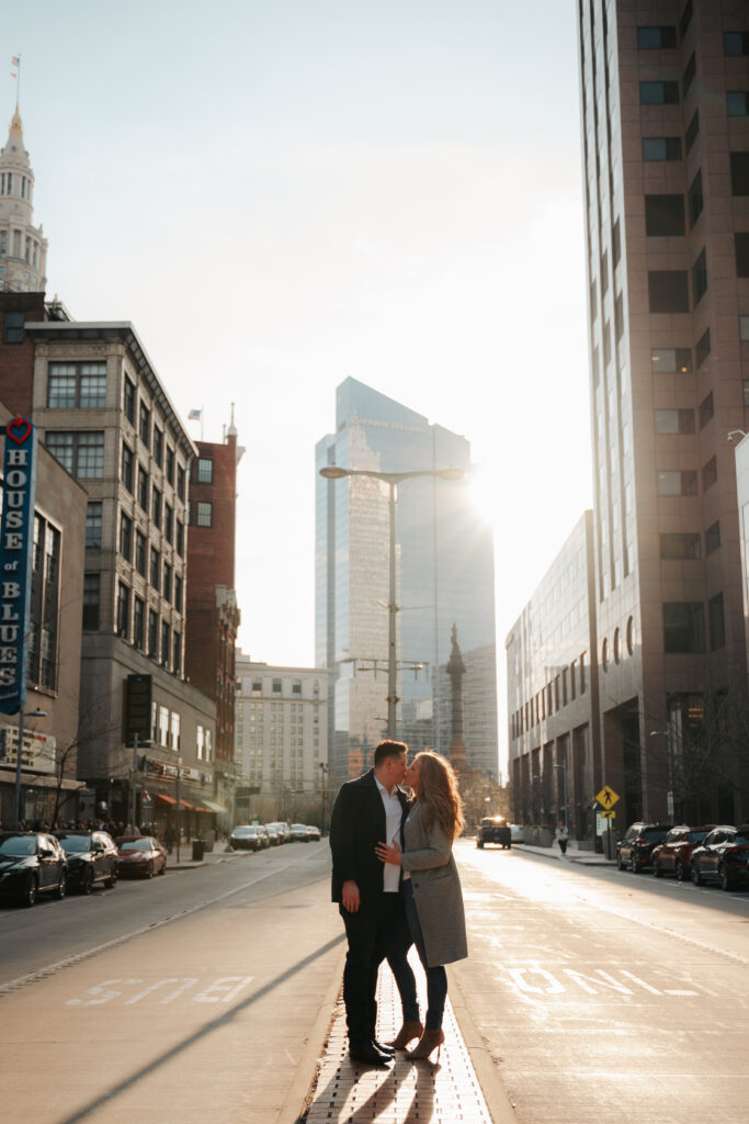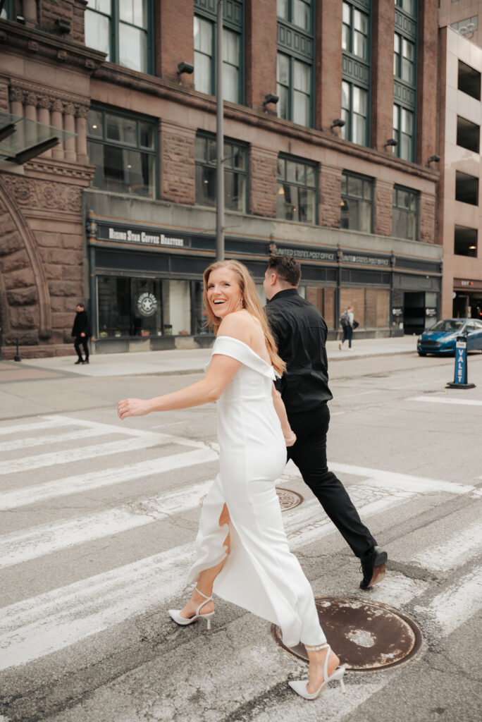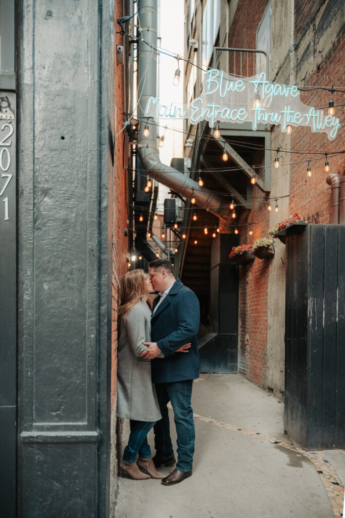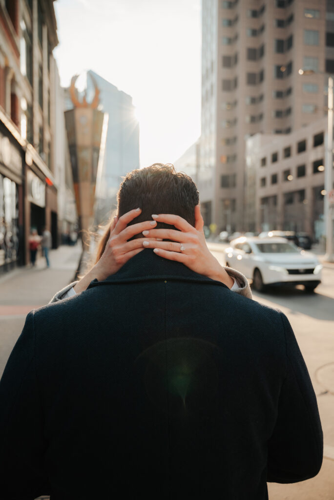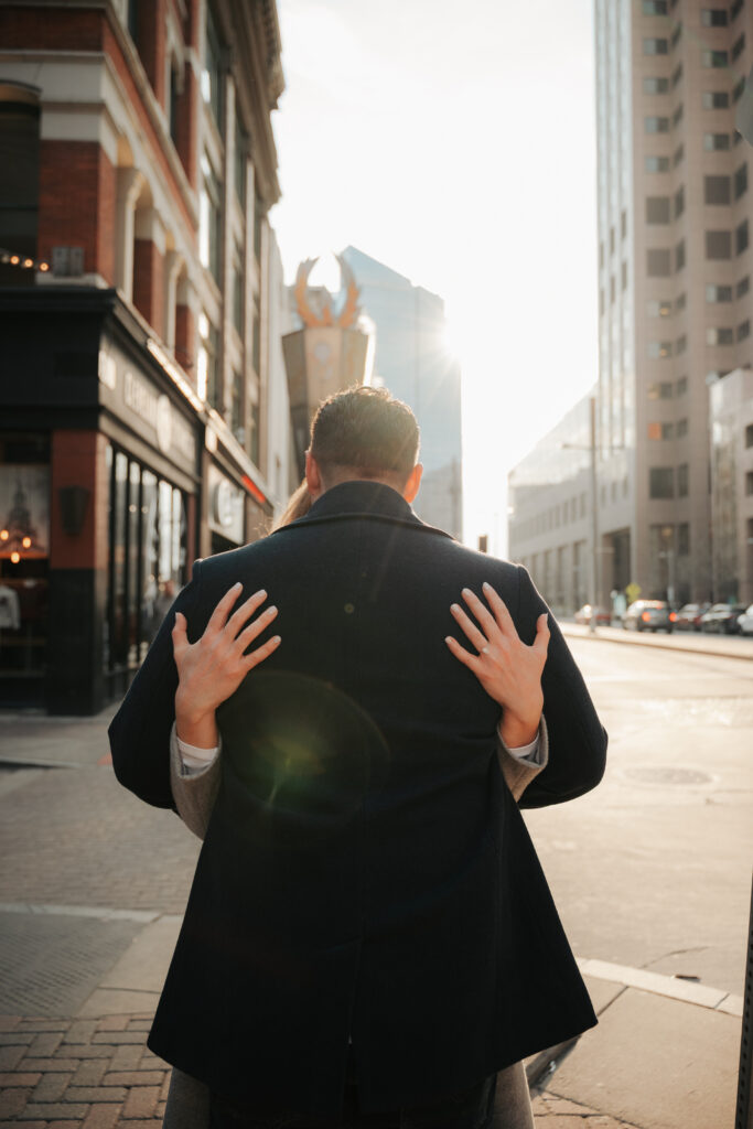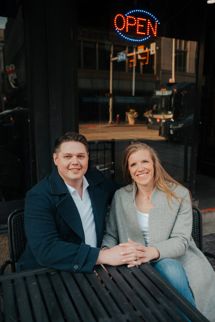 Ryan + Brittany are one of those couples that just feel easy. They’ve been doing long distance, so getting to spend time together is something they don’t take lightly, and you can tell right away. They got engaged this past December at The Arcade Cleveland, and Brittany genuinely had no idea it was happening. She’s a schoolteacher, so she thought she was just going there for school photos. Ryan had other plans and proposed at the Christmas tree, which is honestly such a good Arcade moment.