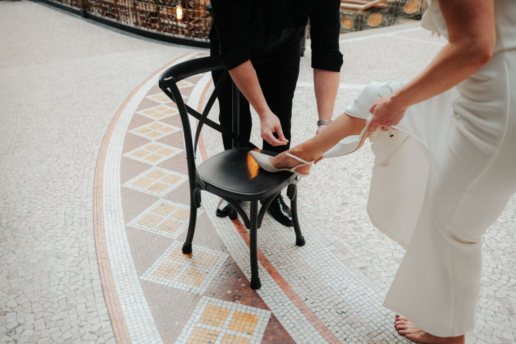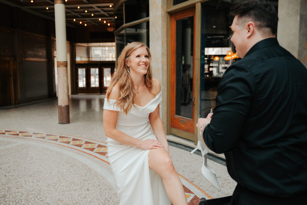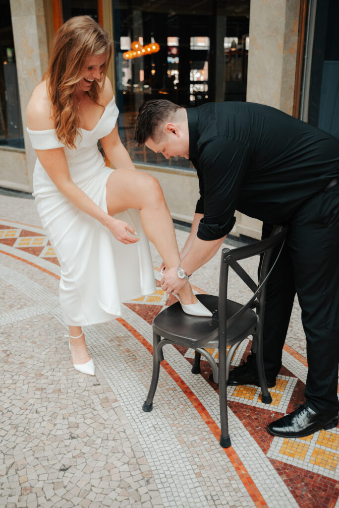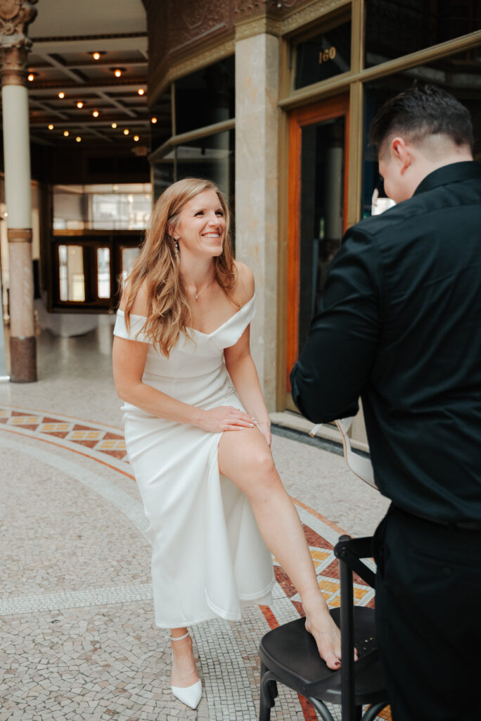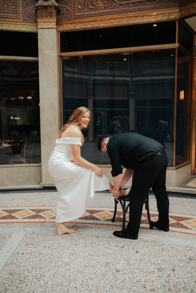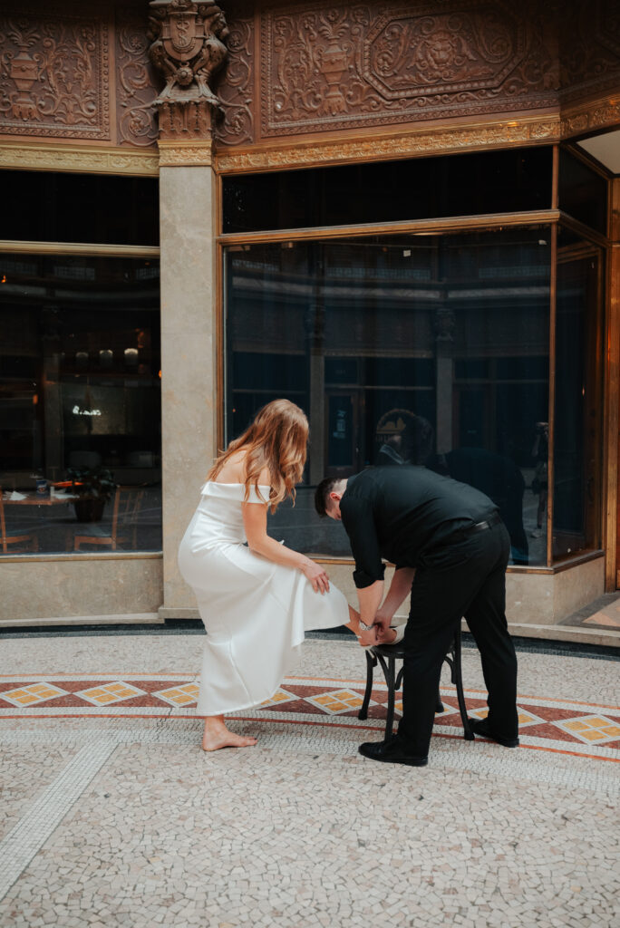 If you have cute shoes, just know I’m probably going to ask you to take them off for a second. Add in this historic tile and I’m sold. Right after this, Brittany was trying to get her shoes back on and it wasn’t going great, so Ryan grabbed a chair, pulled it over, and helped her put them on. Very much a Cinderella moment, just in downtown Cleveland.