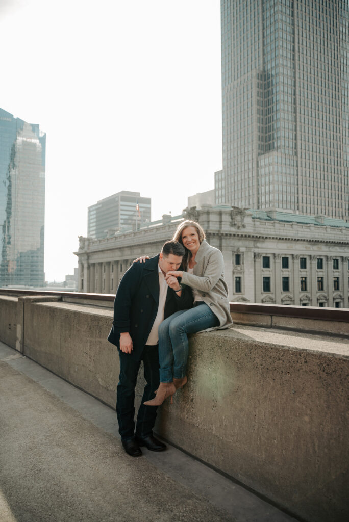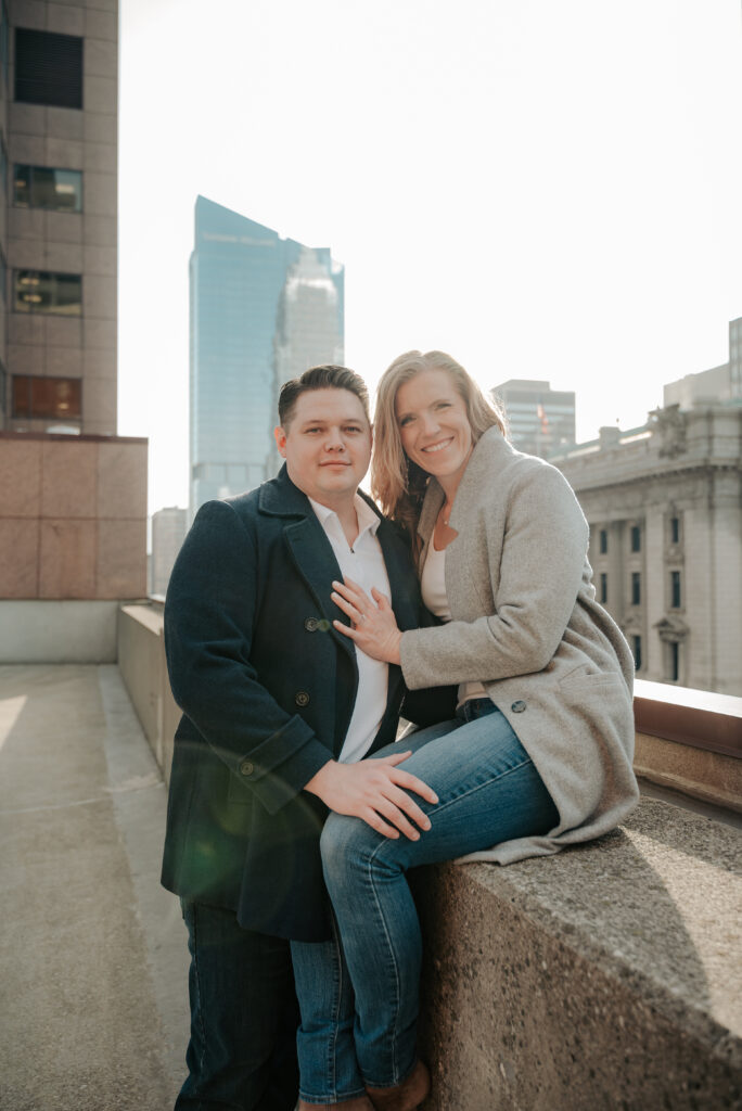 To top it all off, we made our way up to the top of the parking garage we were both parked in and found the best skyline view. I literally squealed because I’ve always wanted to do rooftop photos and somehow haven’t until this session.